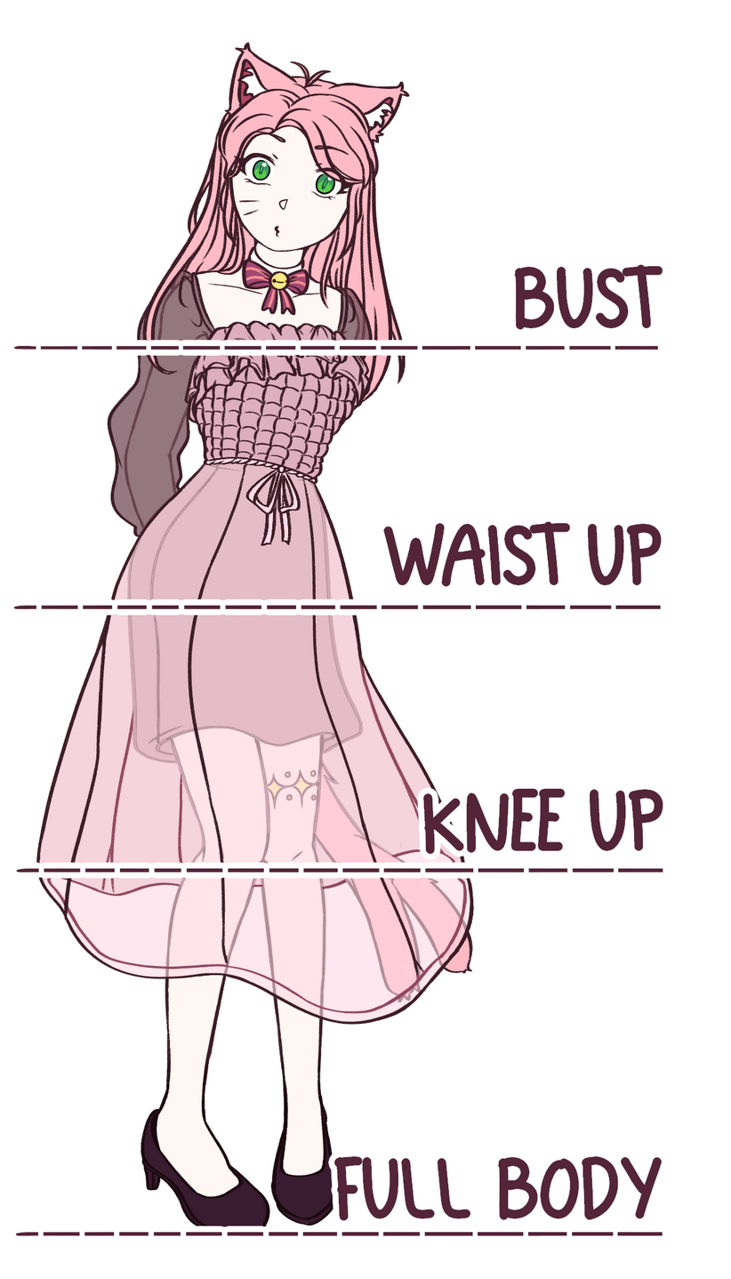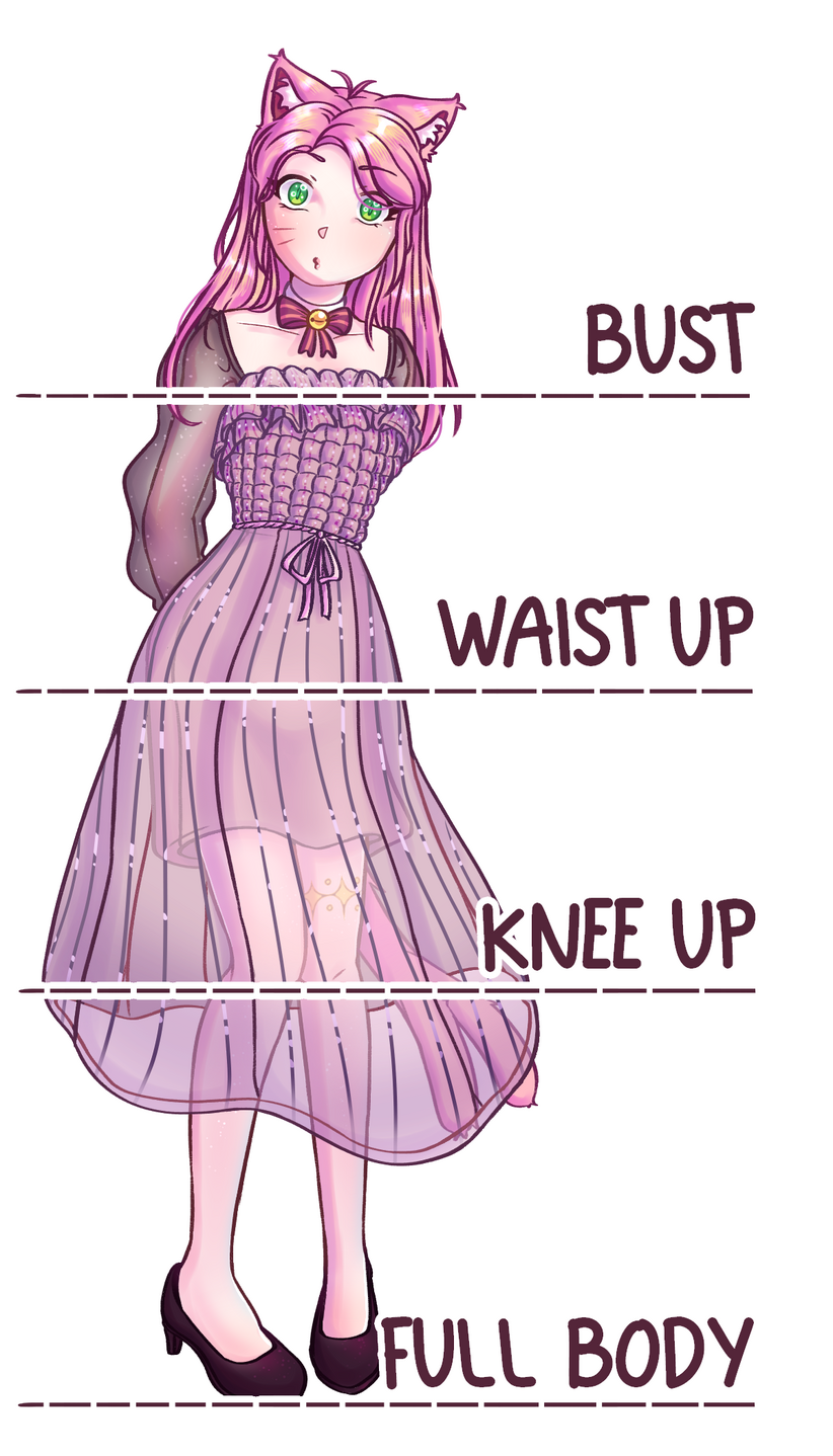 ✿ If you have the same character but you want different poses in one canvas like character sheets. One will cost the base price and the others will count as additional characters.